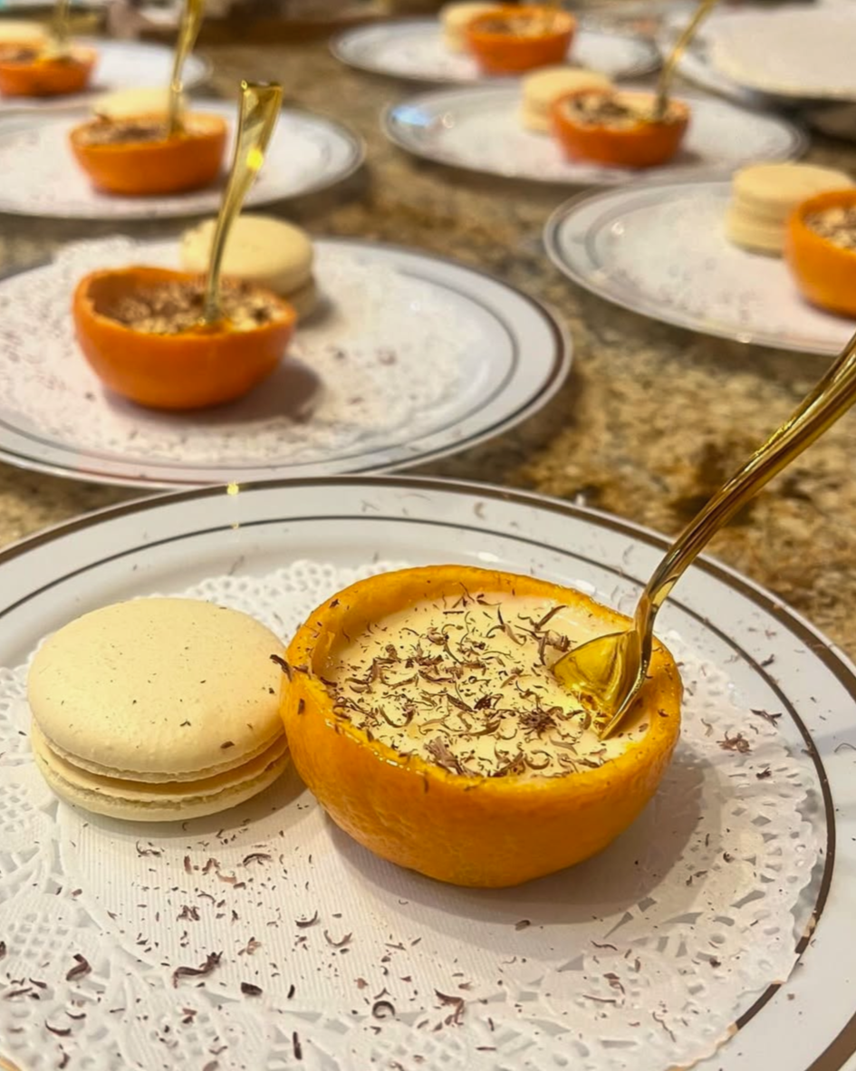 Guests will enjoy a curated fusion-style tasting menu by At The House Catering,